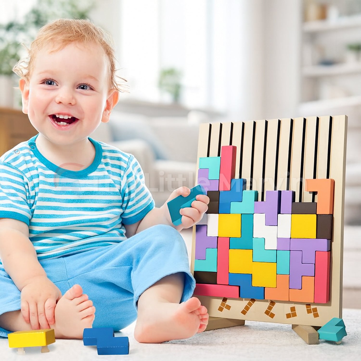 Marvin’s Miniblocks turn classic block stacking into screen-free fun! Kids rotate, arrange, and drop each wooden piece into place - boosting focus, coordination, and confidence with every fit.