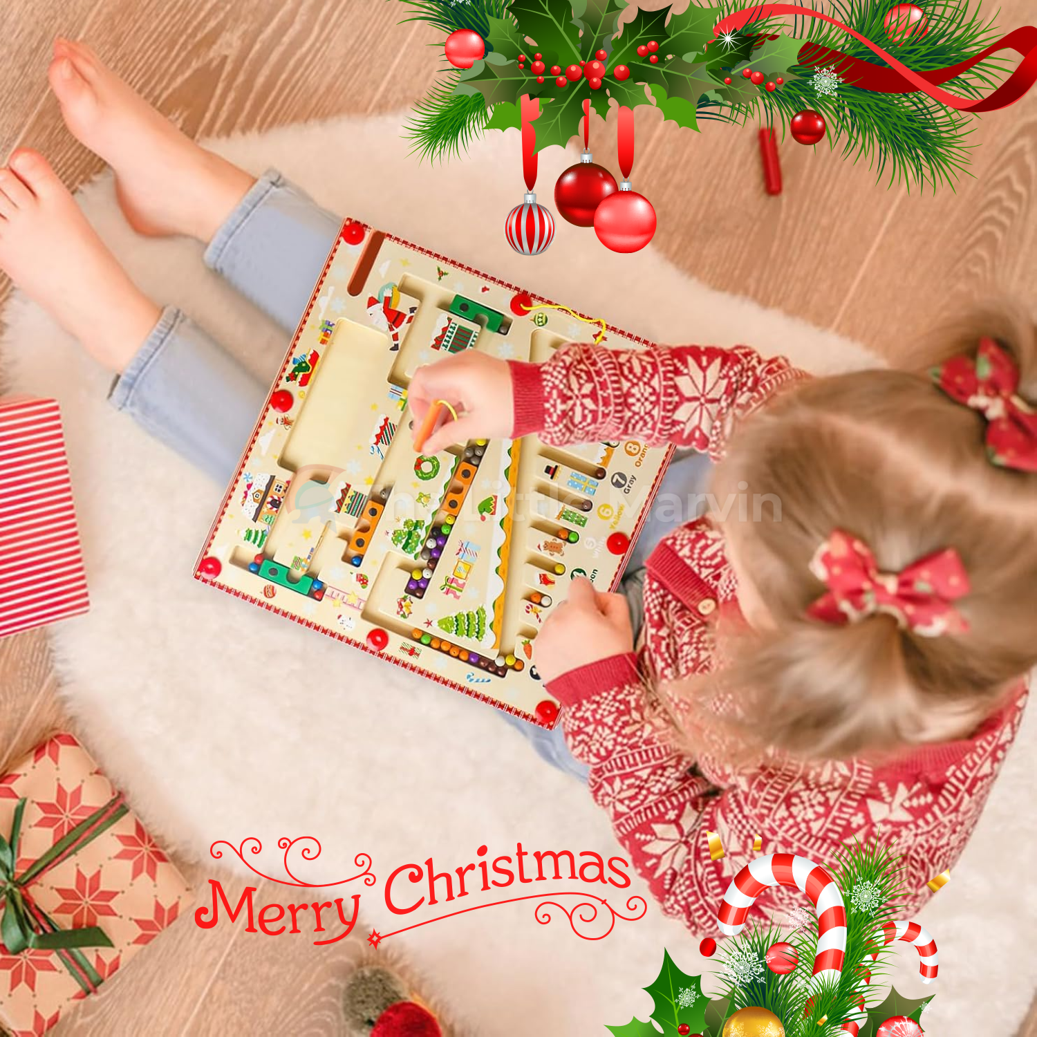 Marvin’s Christmas Maze – is a festive Montessori-inspired toy that turns playtime into a joyful learning experience! Using a magnetic wand, kids guide colorful beads through a cheerful Christmas scene, boosting focus, coordination, and patience while having fun - no screens needed!