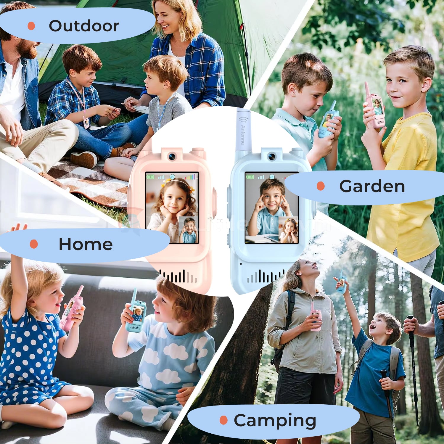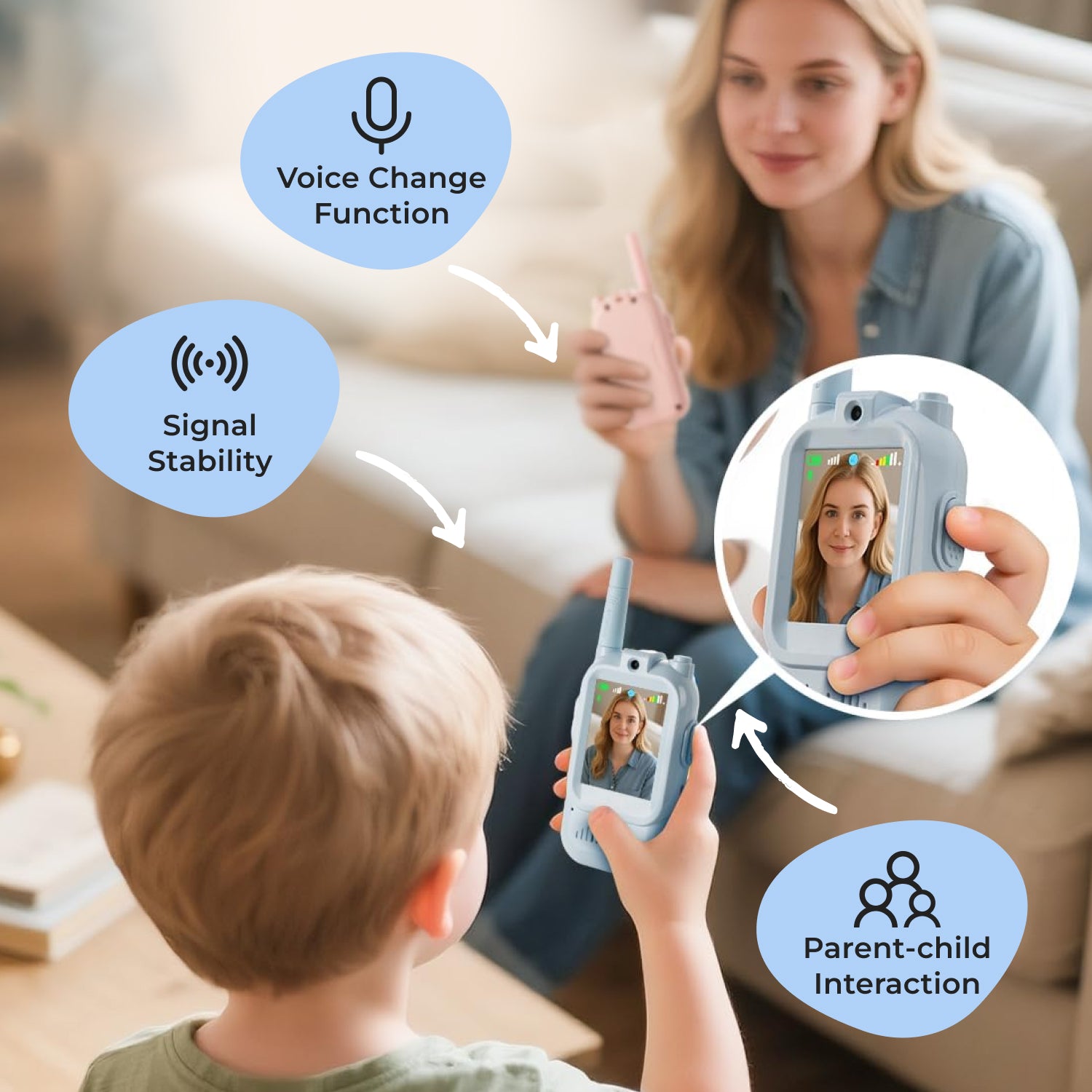 A modern, kid-friendly digital walkie-talkie that lets kids communicate through real-time video and audio - no internet or Wi-Fi required! It’s perfect for playful adventures, imaginative missions, or staying connected with friends and family.