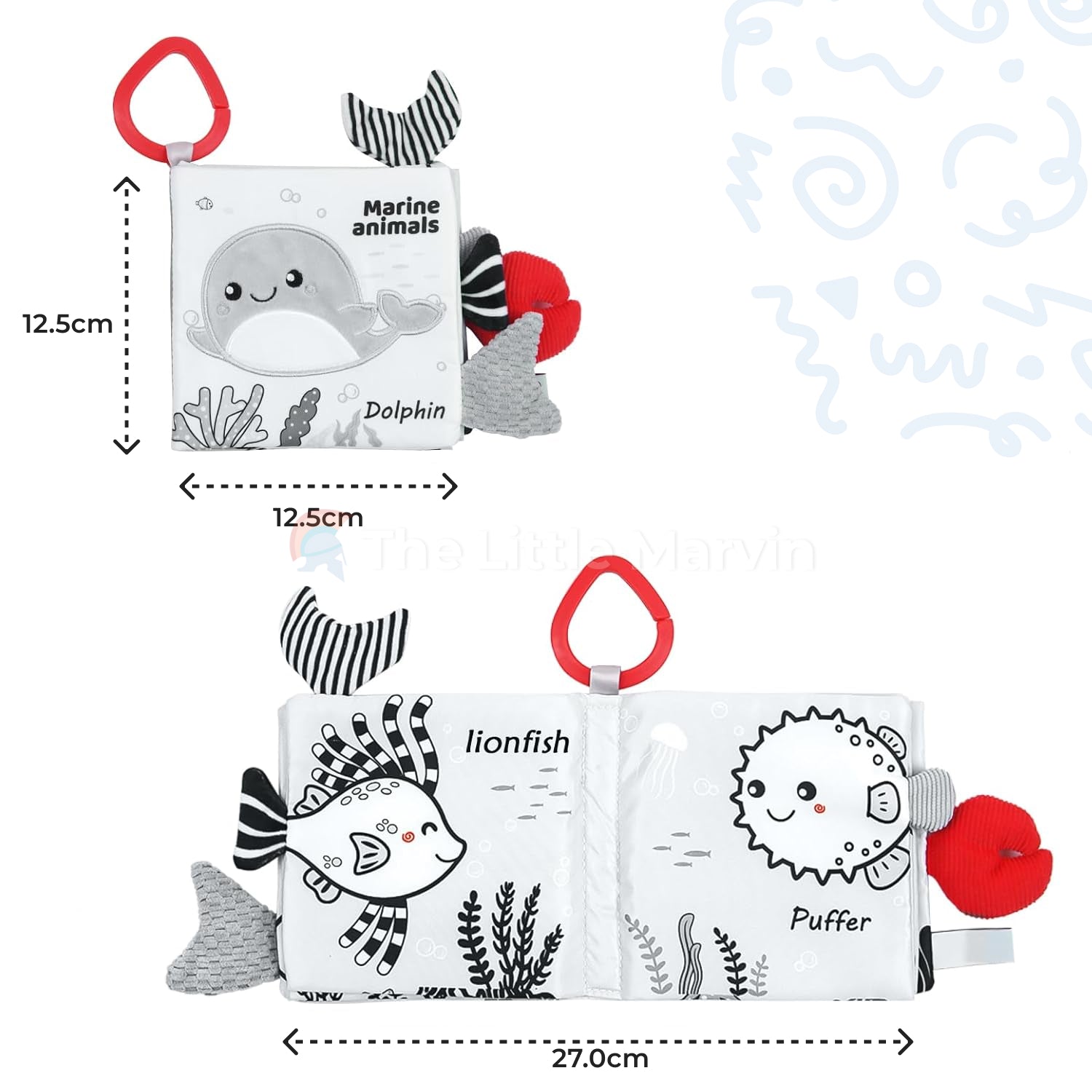 Marvin’s Newborn Book – is a Montessori-inspired sensory book that helps babies explore colors, sounds, and textures while stimulating visual, auditory, and tactile development through playful discovery.