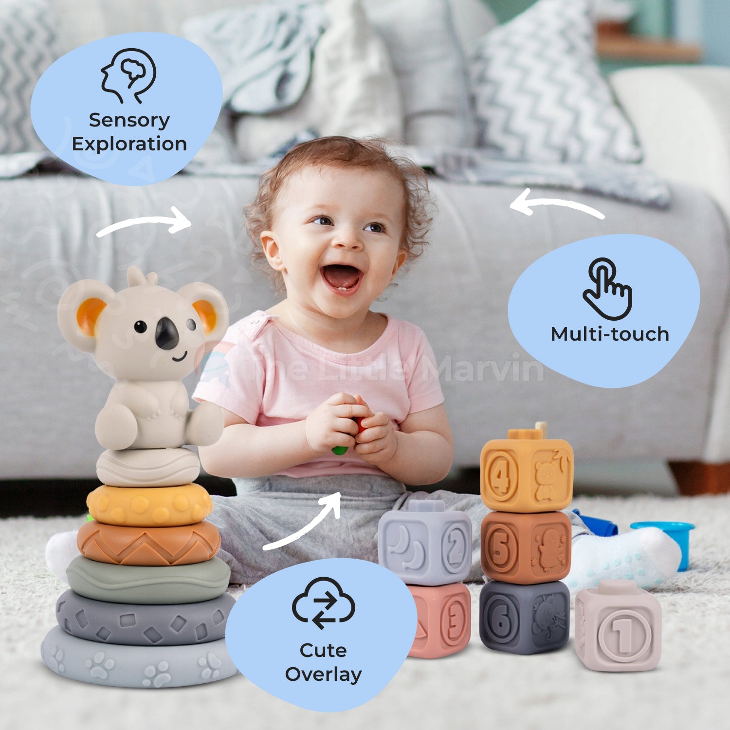 I bought Marvin’s Puzzle Building Blocks for my 1-year-old son, and he absolutely enjoys playing with them. The soft silicone makes them safe to chew while stacking and sorting keeps him busy for a long time. I love that the blocks help him practice motor skills and problem-solving in such a fun way. They feel durable, easy to clean, and perfect for everyday play.