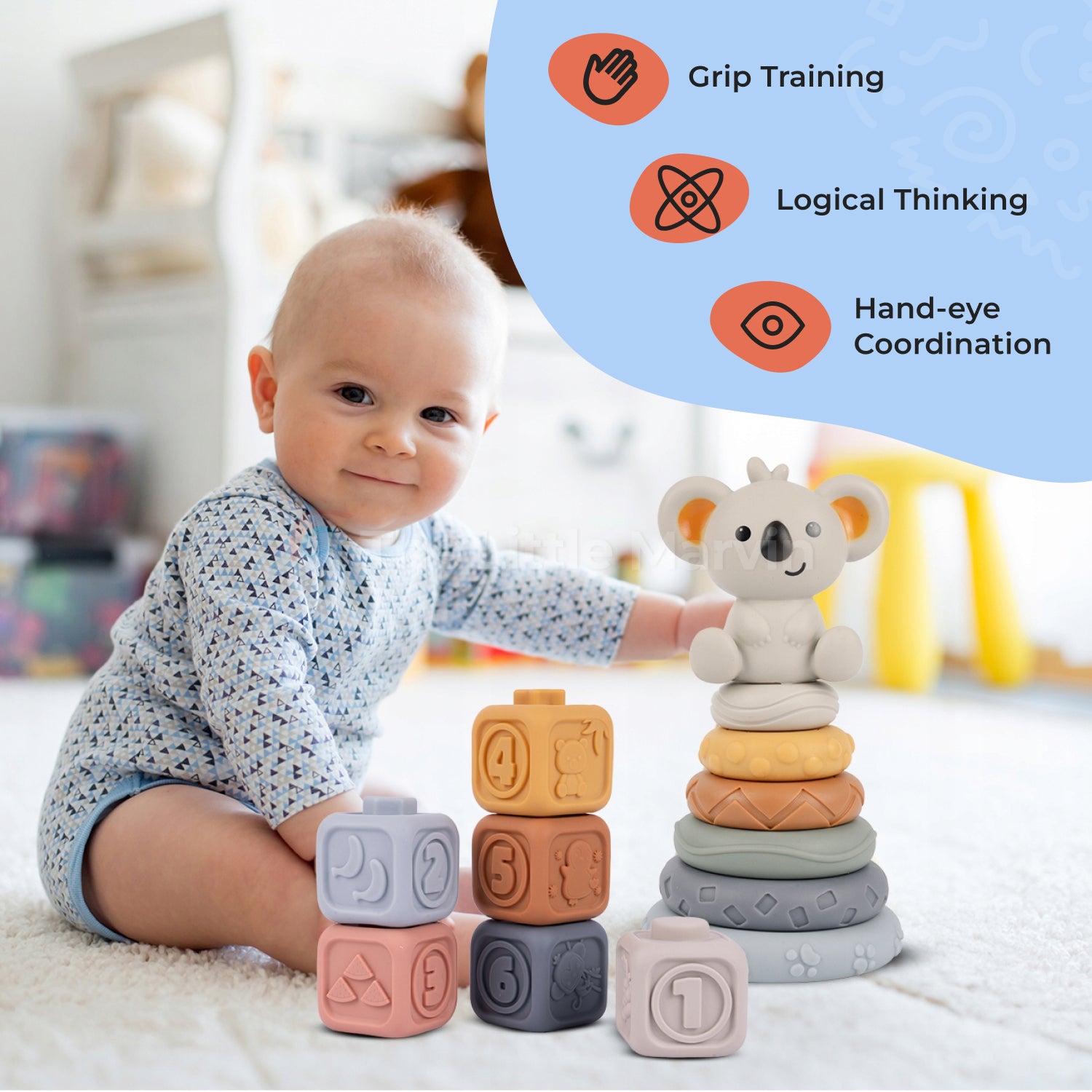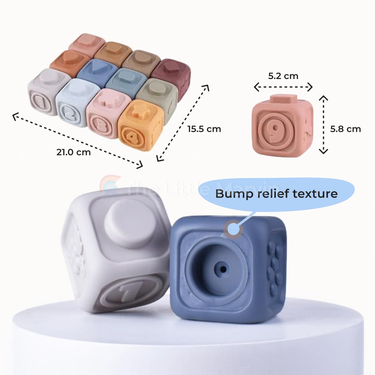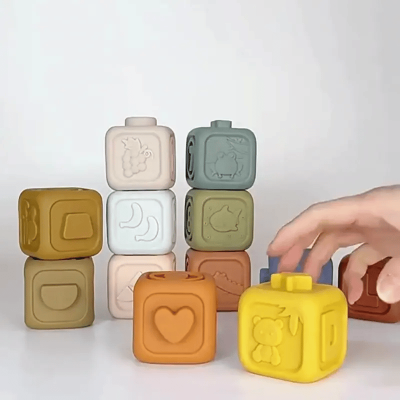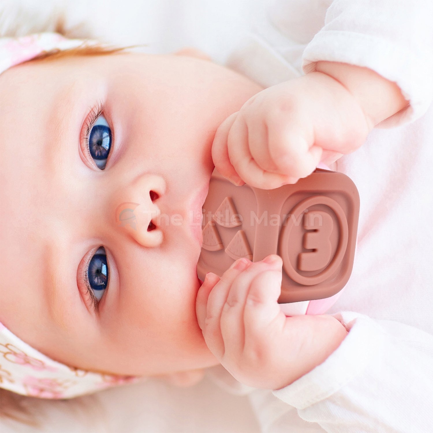 Made from food-grade silicone, the blocks are soft, chewable, and completely safe.