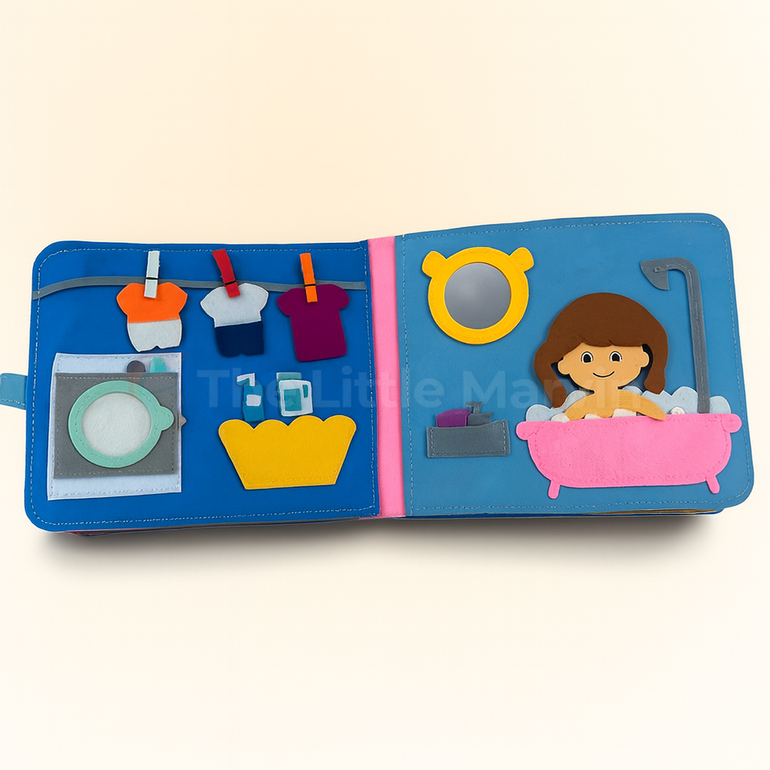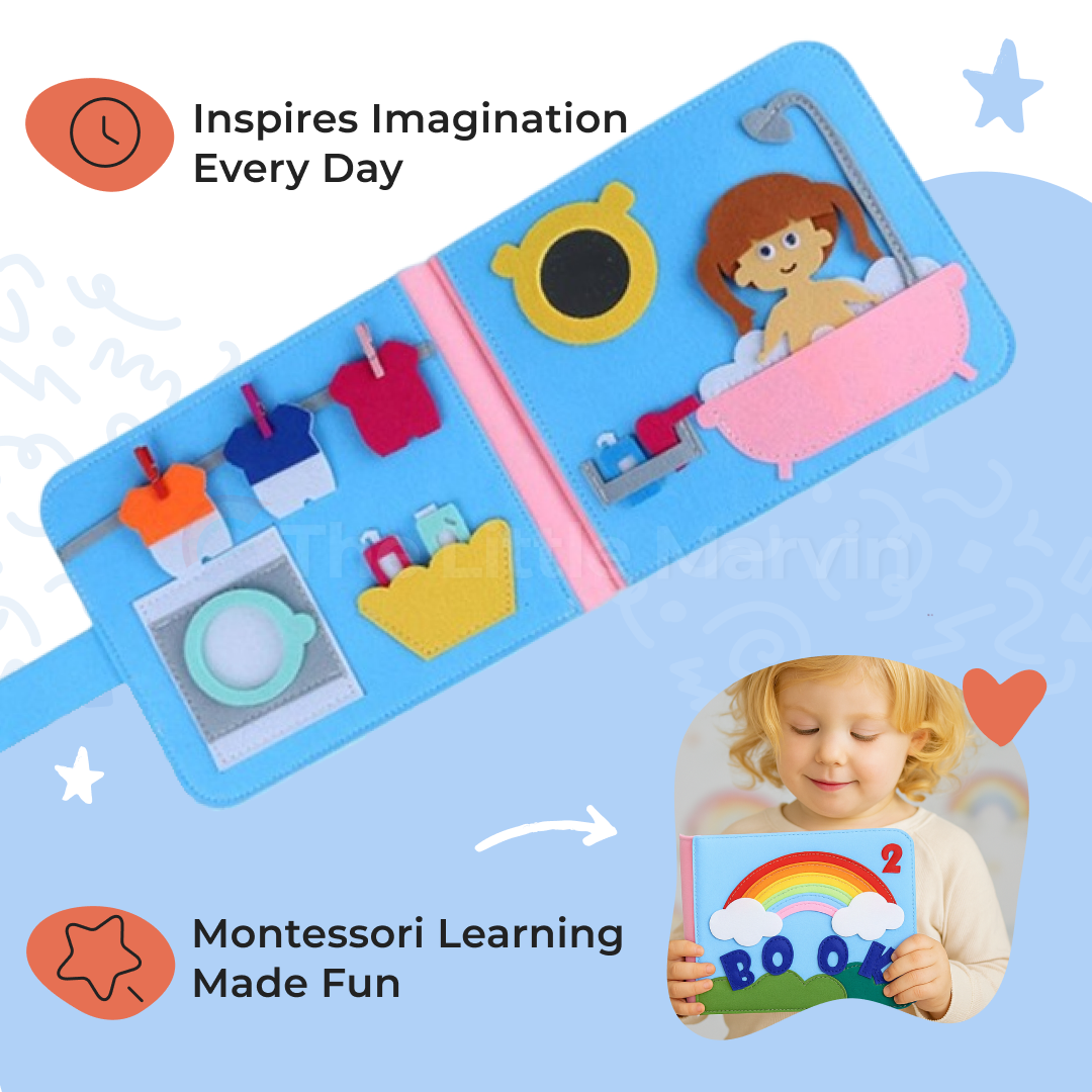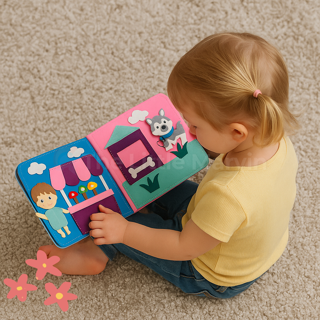 This story book keeps your child engaged, entertained, and learning — without screens. From zippers to buttons and shapes, every page introduces practical skills, nurtures creativity, and supports Montessori learning at home or on the go.