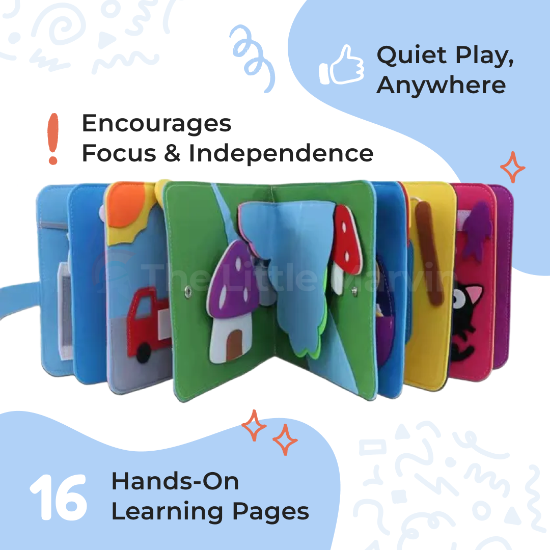 It’s a hands-on learning experience. With interactive pages that spark creativity, build fine motor skills, and keep kids entertained without screens, it’s safe, durable, and travel-friendly.