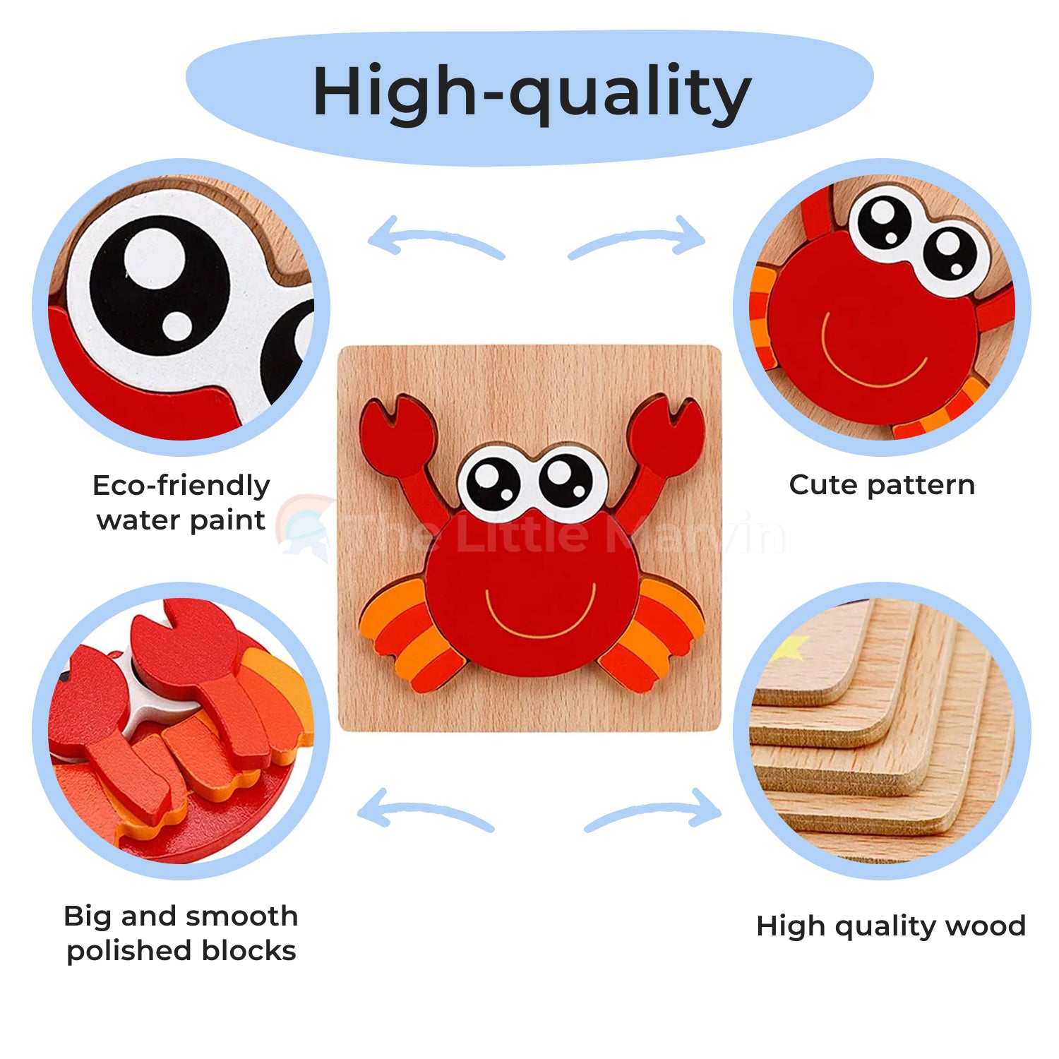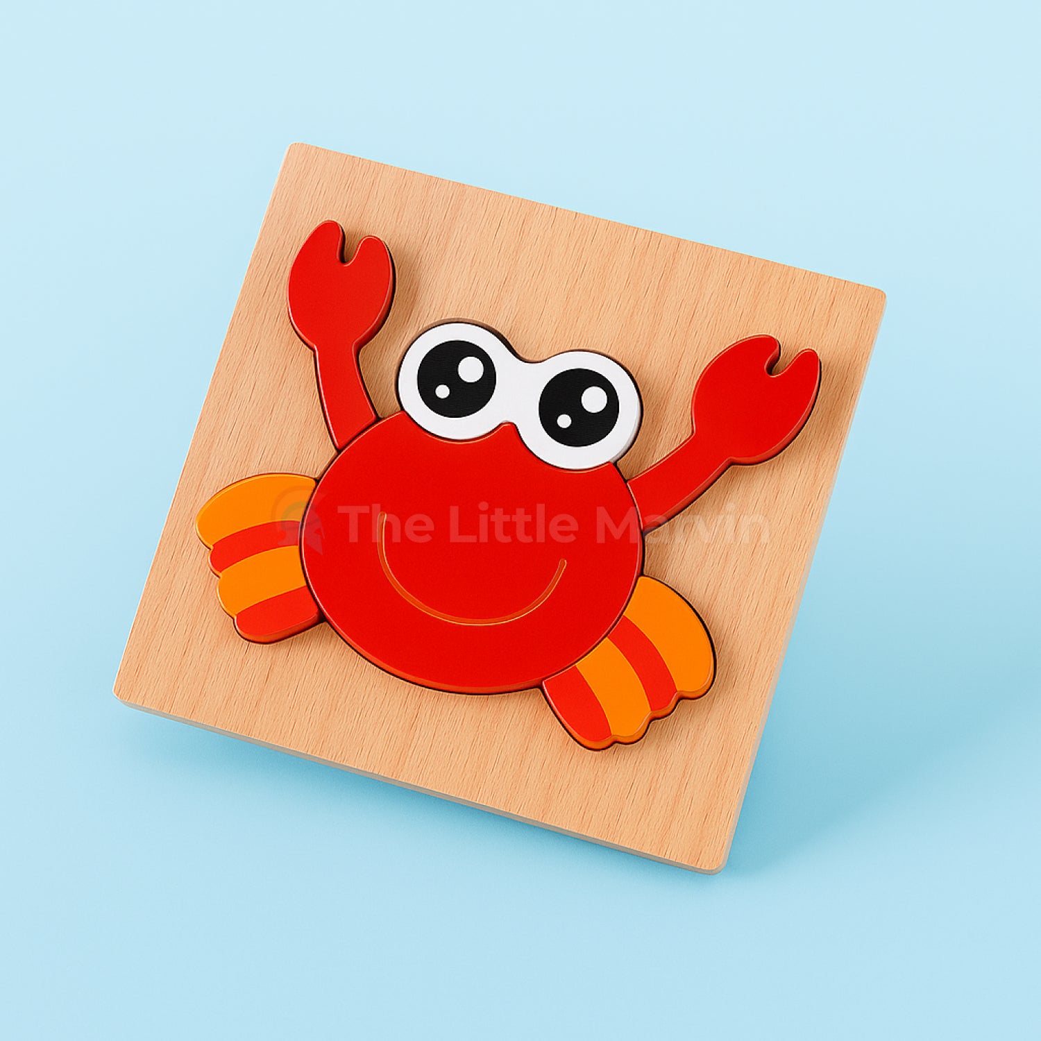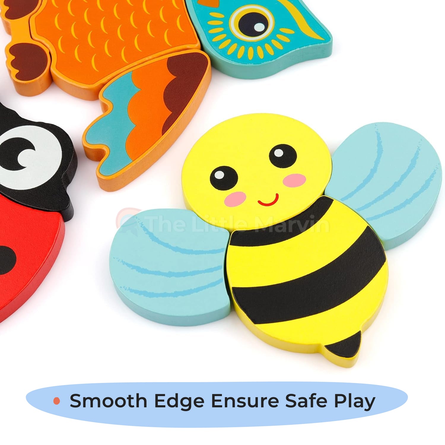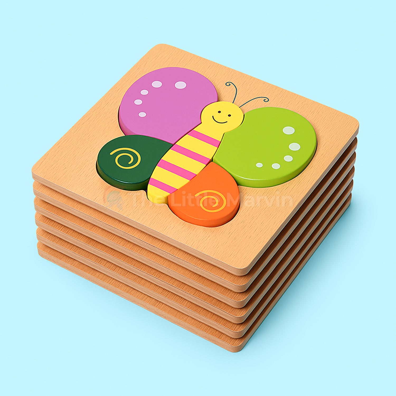 Marvin’s Three-Dimensional Puzzle - is a Montessori-inspired wooden toy that helps children develop focus, coordination, and creativity through hands-on play. With colorful animal designs and chunky 3D pieces, it makes learning shapes and problem-solving fun and engaging.