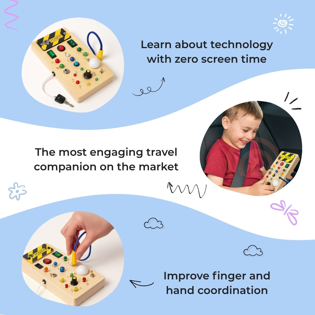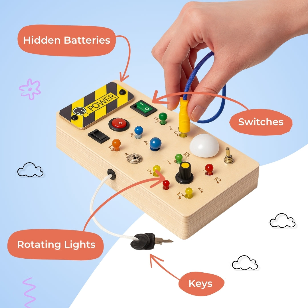 A real-world sensory adventure, packed into a kid-friendly board! It brings light, sound, and endless tinkering fun into little hands—perfect for curious minds that love to figure things out.