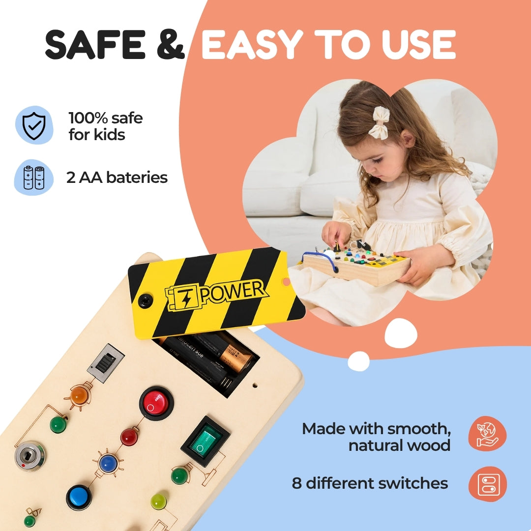 Kids are naturally drawn to the "forbidden"—remote controls, switches, plugs. That’s why we designed this activity board to feel just like the real thing—but made 100% safe and built just for them!